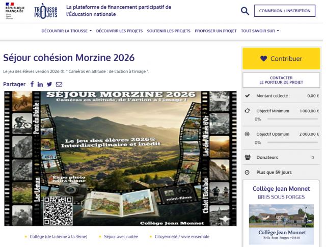 Le projet à été déposé sur la plateforme "La Trousse à Projets" pour permettre d’obtenir des fonds afin de réduire le coût du séjour par famille.